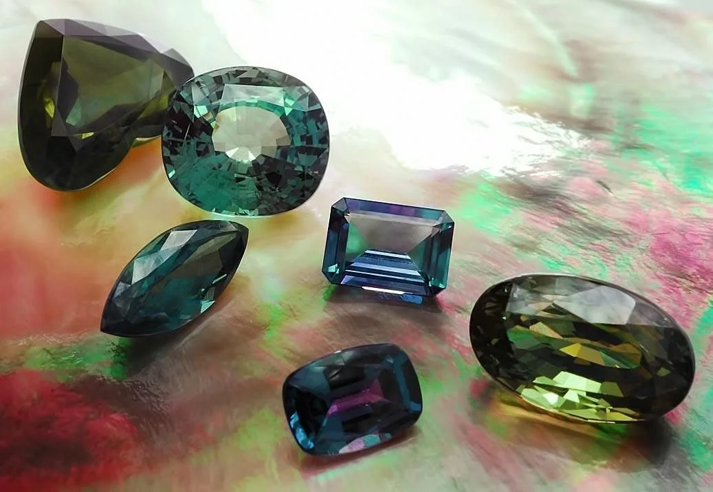 Alexandrite: This rare gem is famous for its color-changing properties, shifting from green to red under different light.